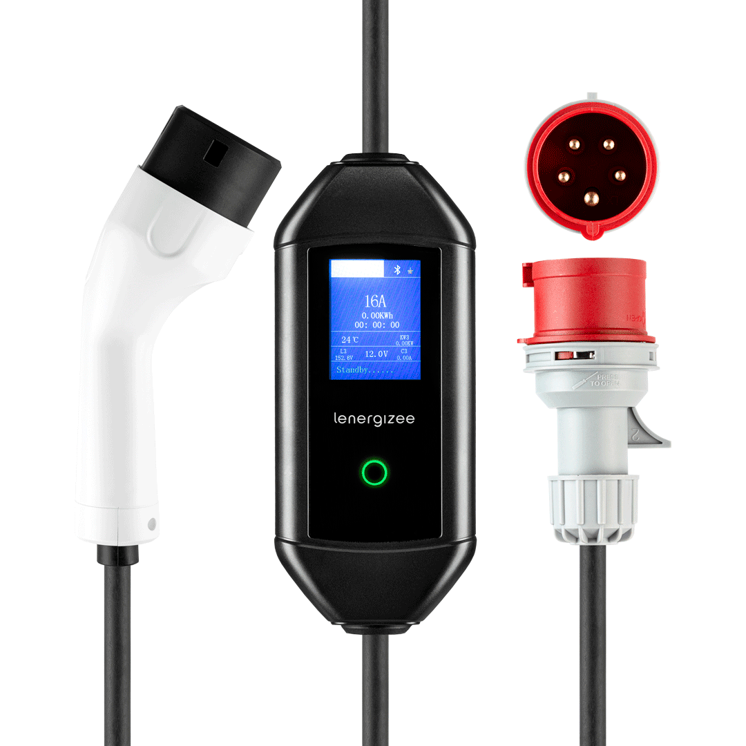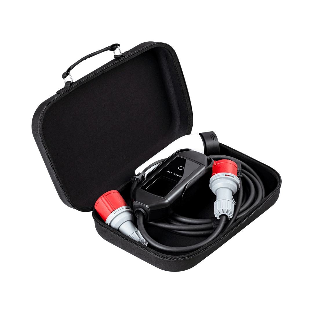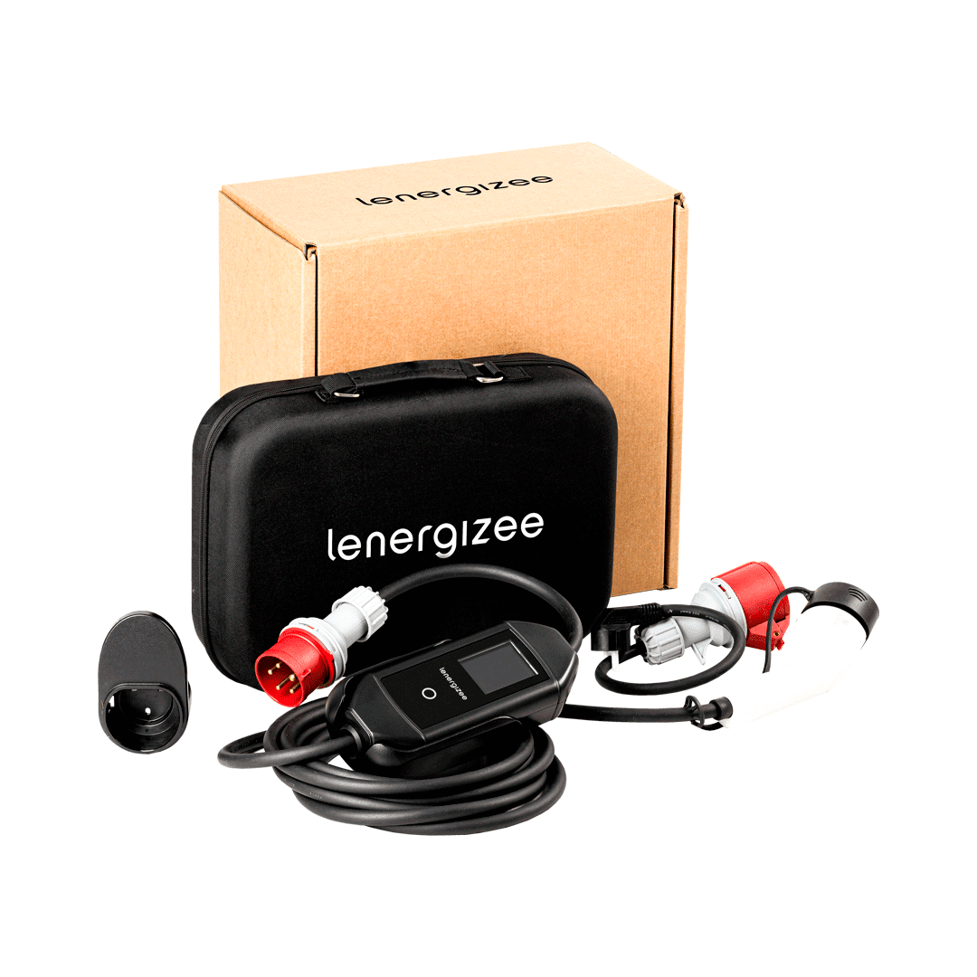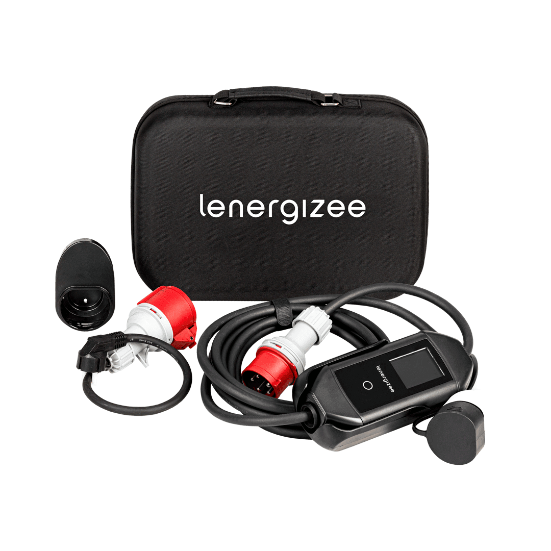Chargeur portable Lenergizee Mobile 11 kW, câble de 5 m, prise, adaptateur, sacoche